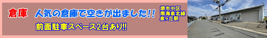 堺市南区 何を始めるにも使いやすい倉庫です!トイレも様式で綺麗です♪ |