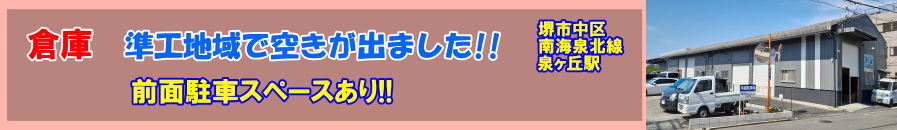 堺市南区 何を始めるにも使いやすい倉庫です!トイレも様式で綺麗です♪ |